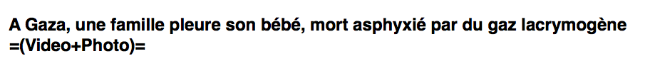 « Une fillette de huit mois a succombé aux inhalations de gaz lacrymogènes », indique ainsi l’agence de manière laconique dans sa synthèse de 19 h 18.